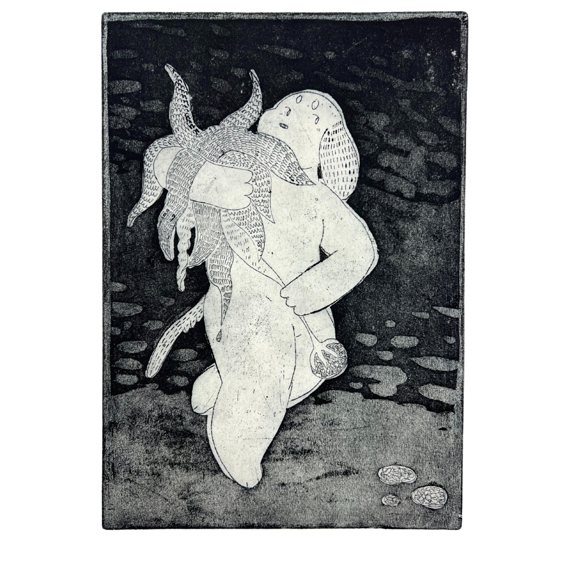 Aluminium etch and aquatint print, hand printed by me on 8x10 inch heavy paper.